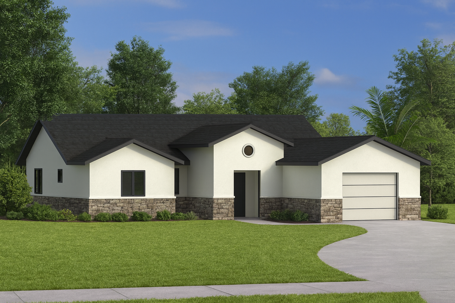 Floorplan: Charming Spanish Home – 3 Bed, 2 Bath, 1,350 SF Step into comfort and style with this beautifully designed 3-bedroom, 2-bath single-family home featuring vaulted ceilings, an open-concept kitchen, and a private garage. With 1,350 sq. ft. of smartly used space, it offers the perfect blend of elegance and affordability — ideal for first-time buyers looking to make their dream home a reality. Don’t miss your chance to own this inviting, move-in-ready gem!